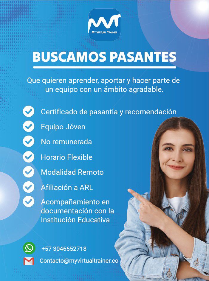 La Oficina de Prácticas de la Universidad Tecnológica de Pereira comparte esta oportunidad de práctica empresarial en modalidad remota, dirigida a estudiantes de diferentes programas académicos que cumplan con los requisitos institucionales para la realización de prácticas.