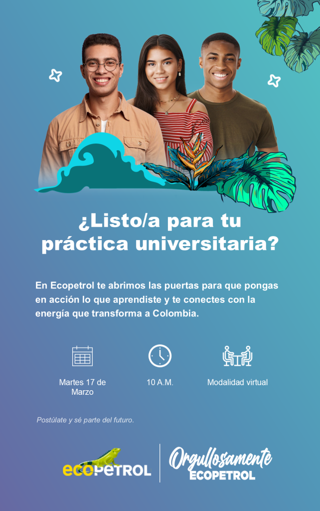 El próximo martes 17 de marzo, a las 10:00 a. m., se realizará una socialización virtual de la convocatoria de prácticas profesionales de Ecopetrol, en la que representantes de la compañía presentarán las características, perfiles requeridos y condiciones de estas oportunidades de práctica para el período 2026-II.