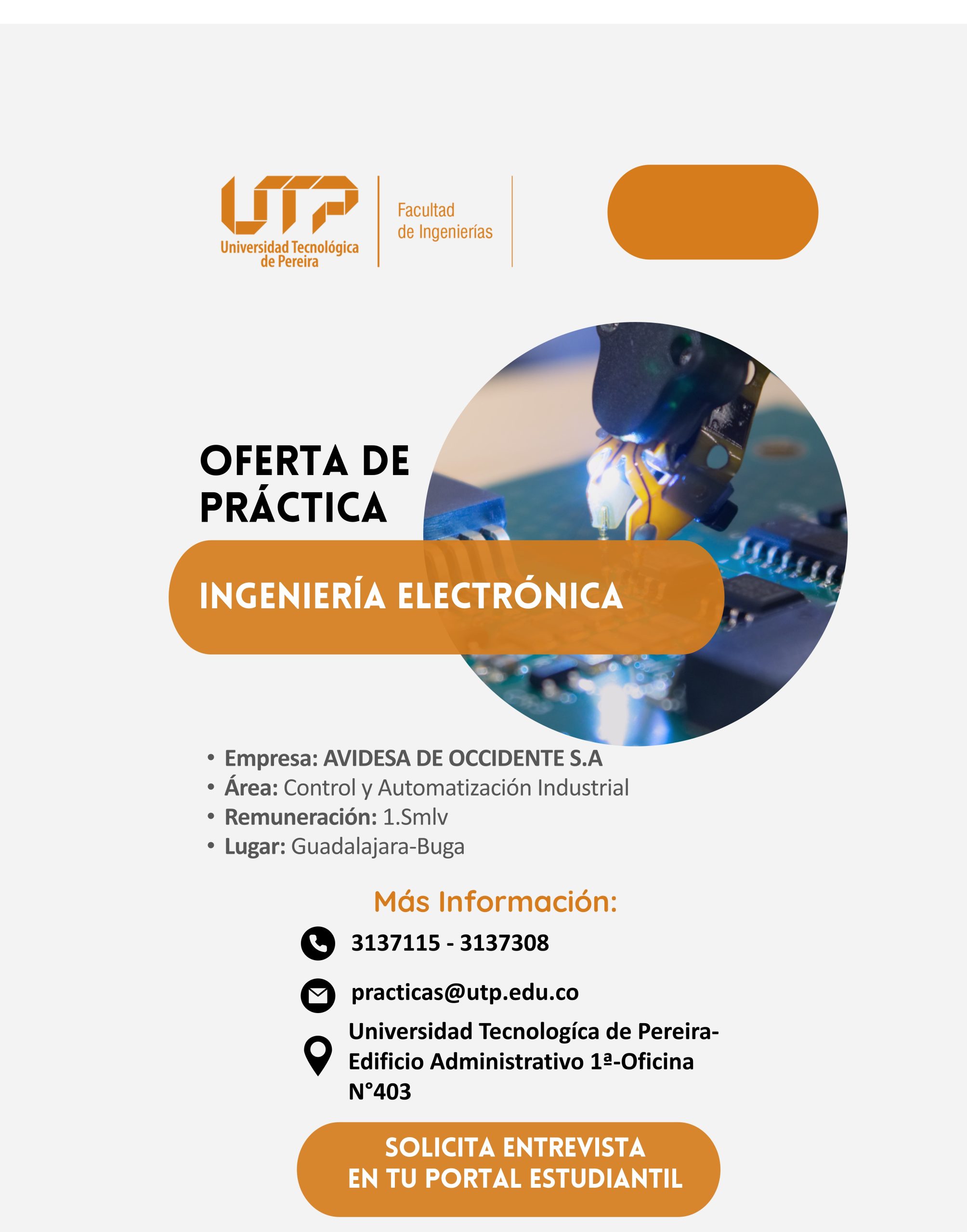 Agosto | AVIDESA DE OCCIDENTE S.A | APRENDIZ INGENIERIA ELECTRONICA | INGENIERIA ELECTRONICA | Ver más | Ir a solicitar entrevista |