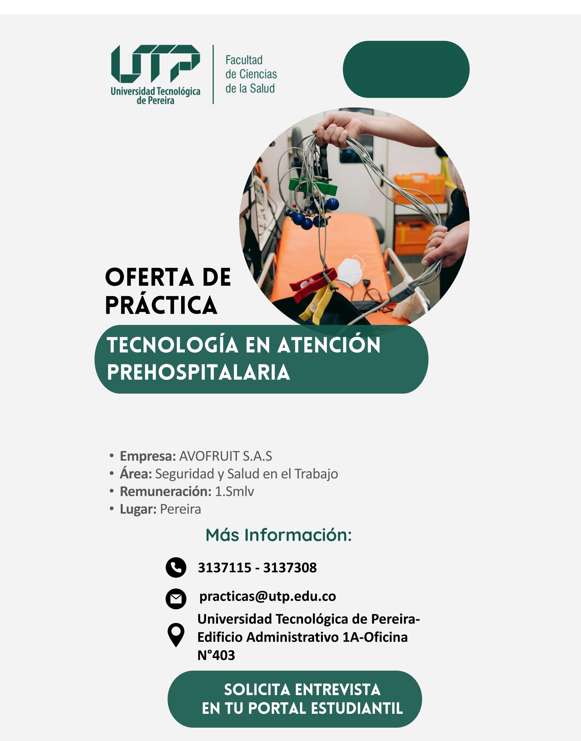 Septiembre | AVOFRUIT S.A.S | PRACTICANTE SST | TECNOLOGIA EN ATENCION PREHOSPITALARIA | Ver más | Ir a solicitar entrevista |