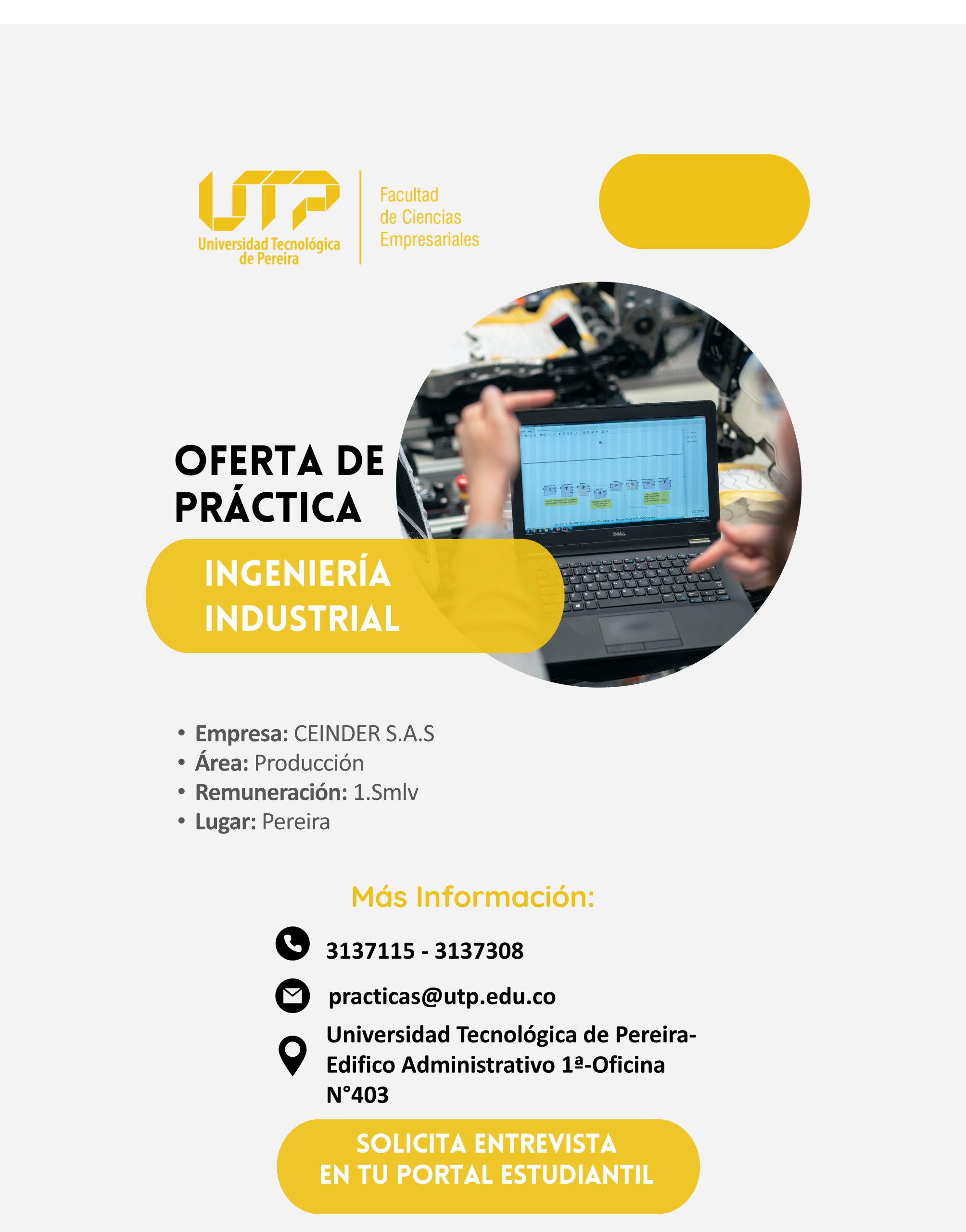 Agosto | CEINDER S.A.S. | PRACTICA INGENIERO INDUSTRIAL | INGENIERIA INDUSTRIAL | Ver más | Ir a solicitar entrevista |