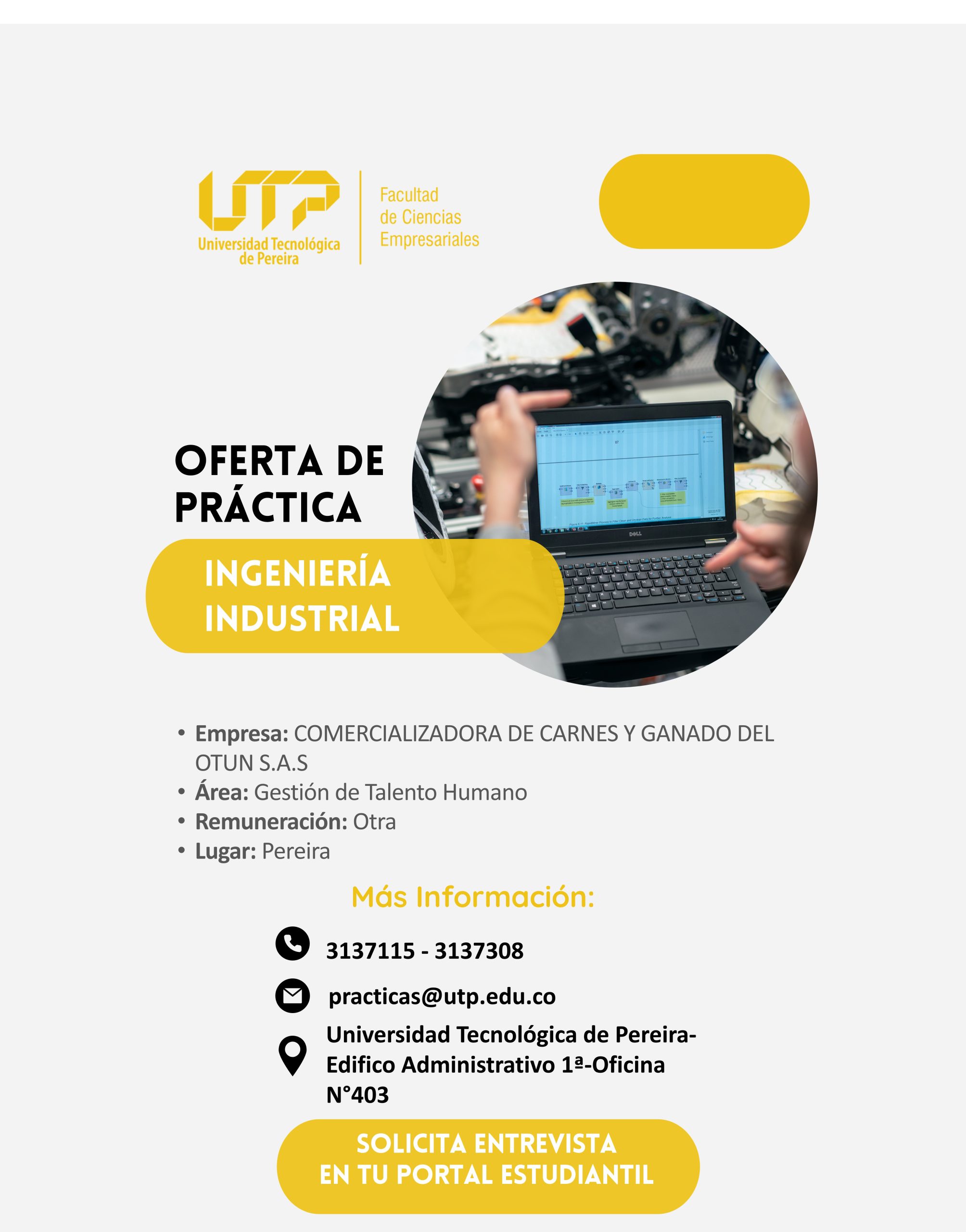Agosto | COMERCIALIZADORA DE CARNES Y GANADO DEL OTUN S.A.S. | PRACTICA EN GESTION HUMANA | INGENIERIA INDUSTRIAL | Ver más | Ir a solicitar entrevista |