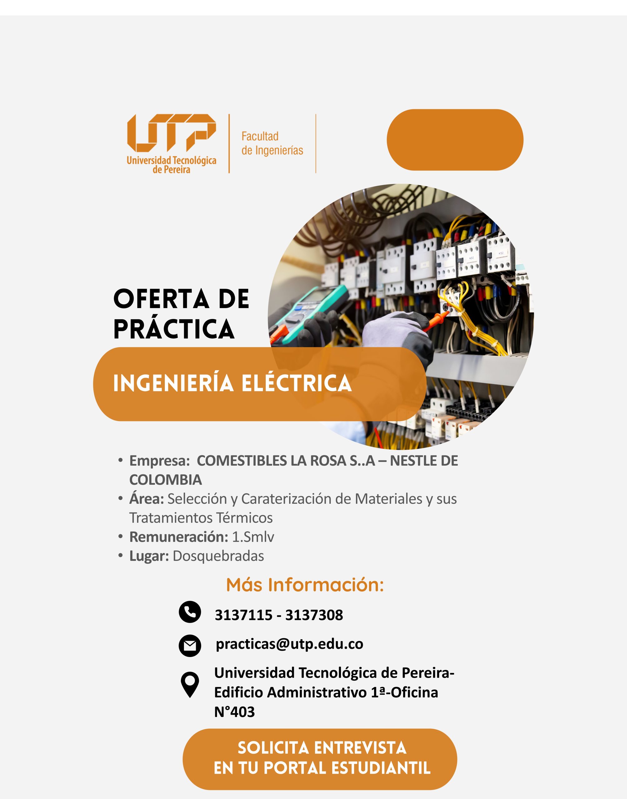 Agosto | COMESTIBLES LA ROSA S.A – NESTLE DE COLOMBIA | TECNICO | INGENIERÍA ELÉCTRICA | Ver más | Ir a solicitar entrevista |