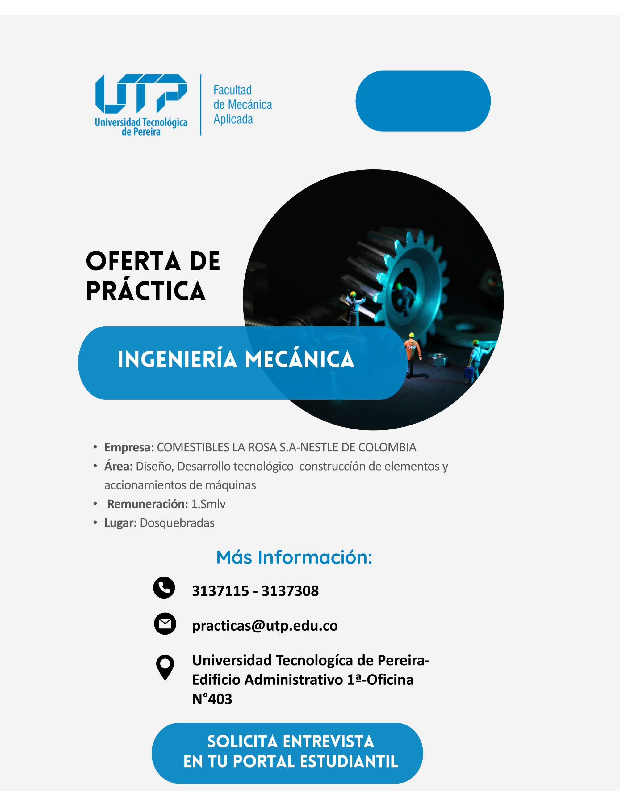Agosto | COMESTIBLES LA ROSA S.A – NESTLE DE COLOMBIA | TECNICO | INGENIERÍA MECÁNICA | Ver más | Ir a solicitar entrevista |