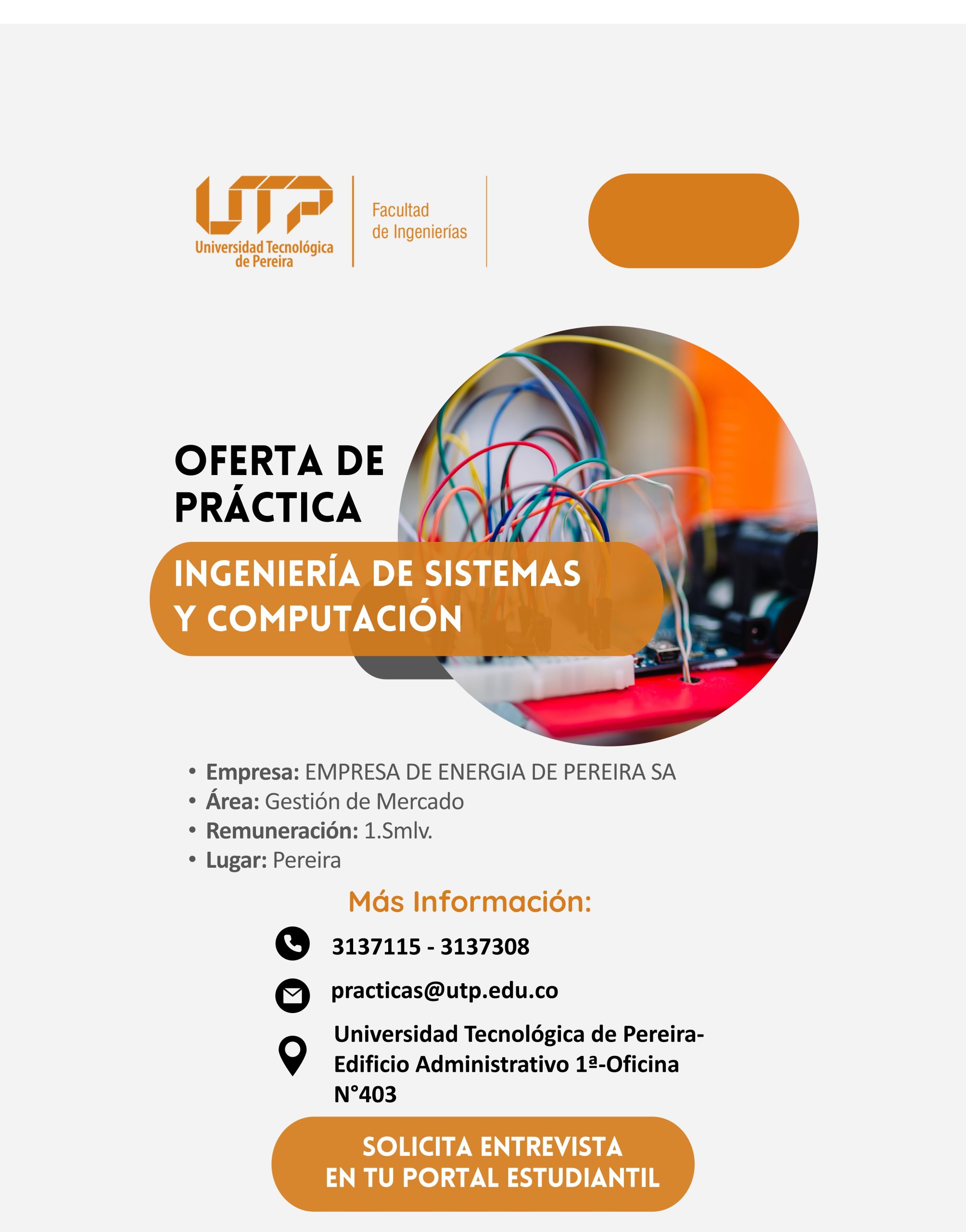 Septiembre | EMPRESA DE ENERGIA DE PEREIRA SA | PRACTICANTE GESTIÓN MERCADO | INGENIERIA DE SISTEMAS Y COMPUTACION | Ver más | Ir a solicitar entrevista |