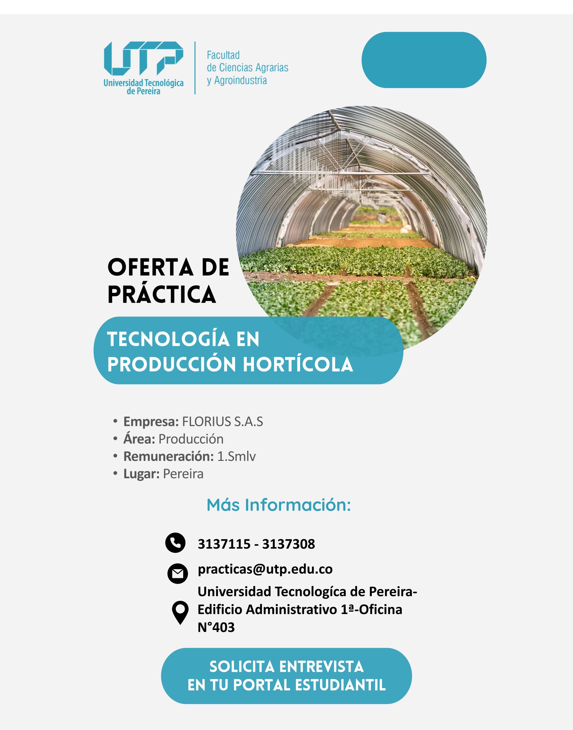Septiembre | FLORIUS S.A.S. | APRENDIZ TECNOLOGO EN PRODUCCIÓN AGRICOLA | TECNOLOGIA EN PRODUCCION HORTICOLA | Ver más | Ir a solicitar entrevista |