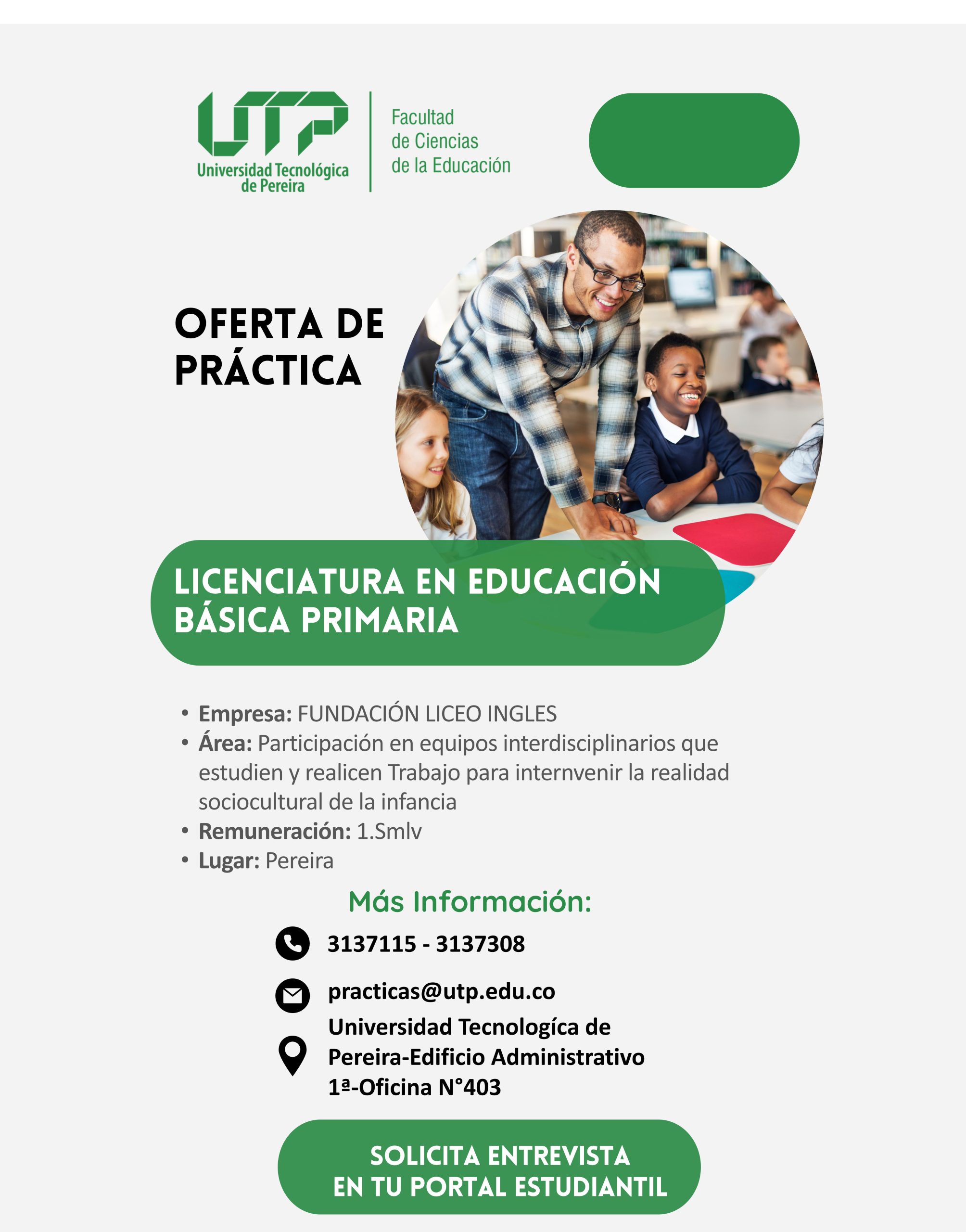 Agosto | FUNDACIÓN LICEO INGLES | PRÁCTICANTE DE LICENCIATURA EN EDUCACIÓN INFANTIL | LICENCIATURA EN BASICA PRIMARIA | Ver más | Ir a solicitar entrevista |
