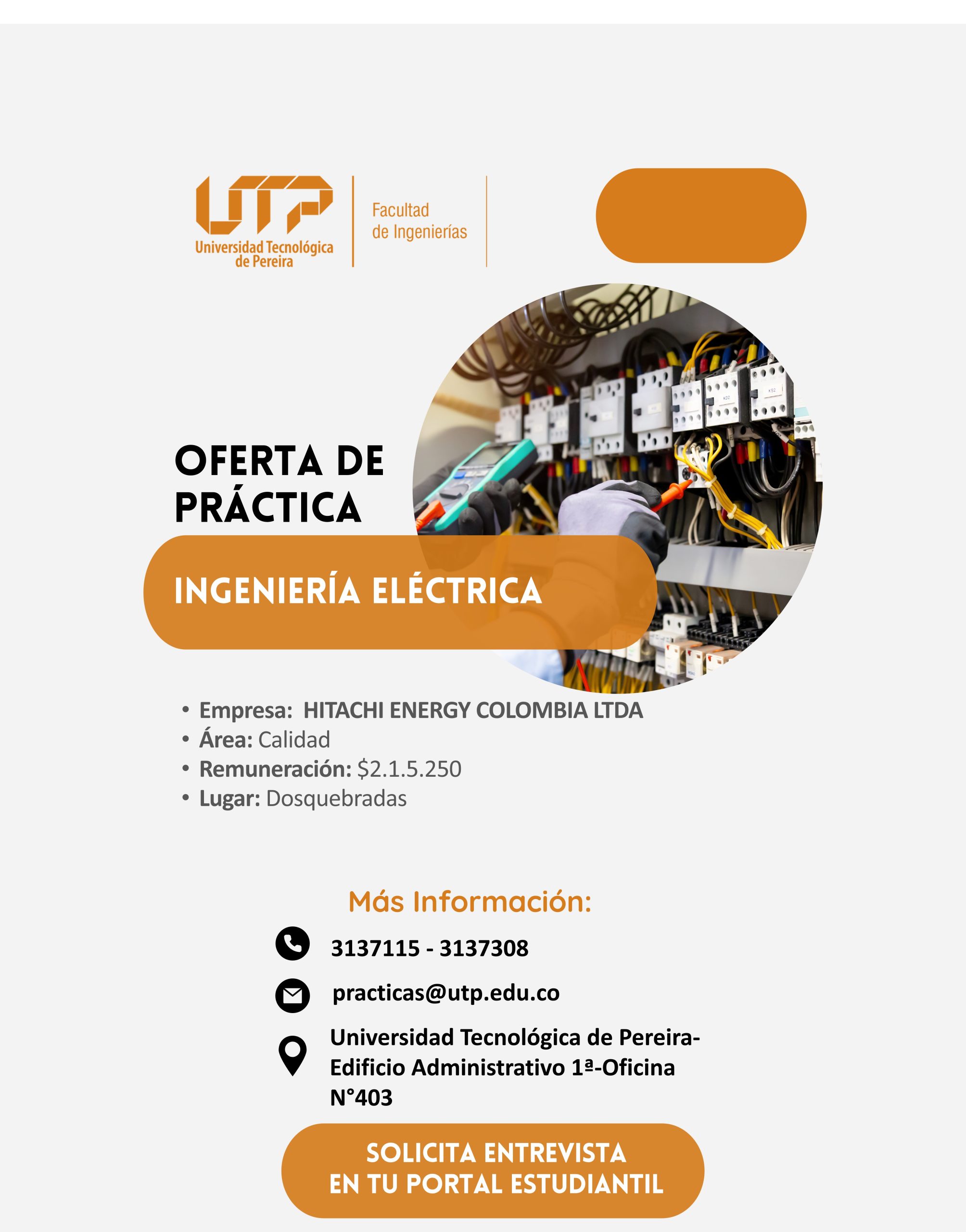 Septiembre | HITACHI ENERGY COLOMBIA LTDA | HITACHI ENERGY – PRACTICANTE DE CALIDAD (R0098502 ING ELECTRICA) | INGENIERIA ELECTRICA | Ver más | Ir a solicitar entrevista |