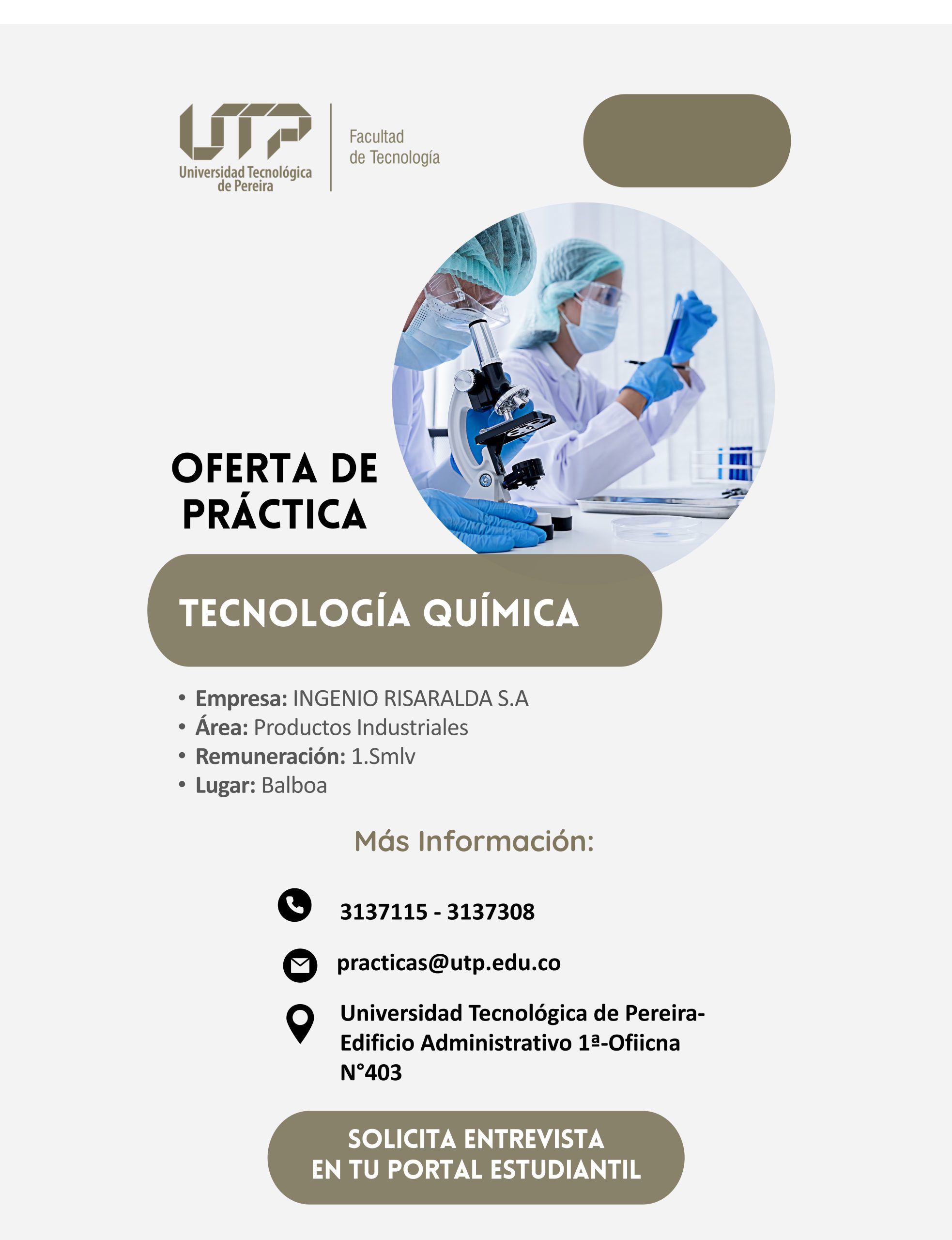 Septiembre | INGENIO RISARALDA S.A | PRACTICANTE DE TECNOLOGÍA QUÍMICA | TECNOLOGIA QUIMICA | Ver más | Ir a solicitar entrevista |