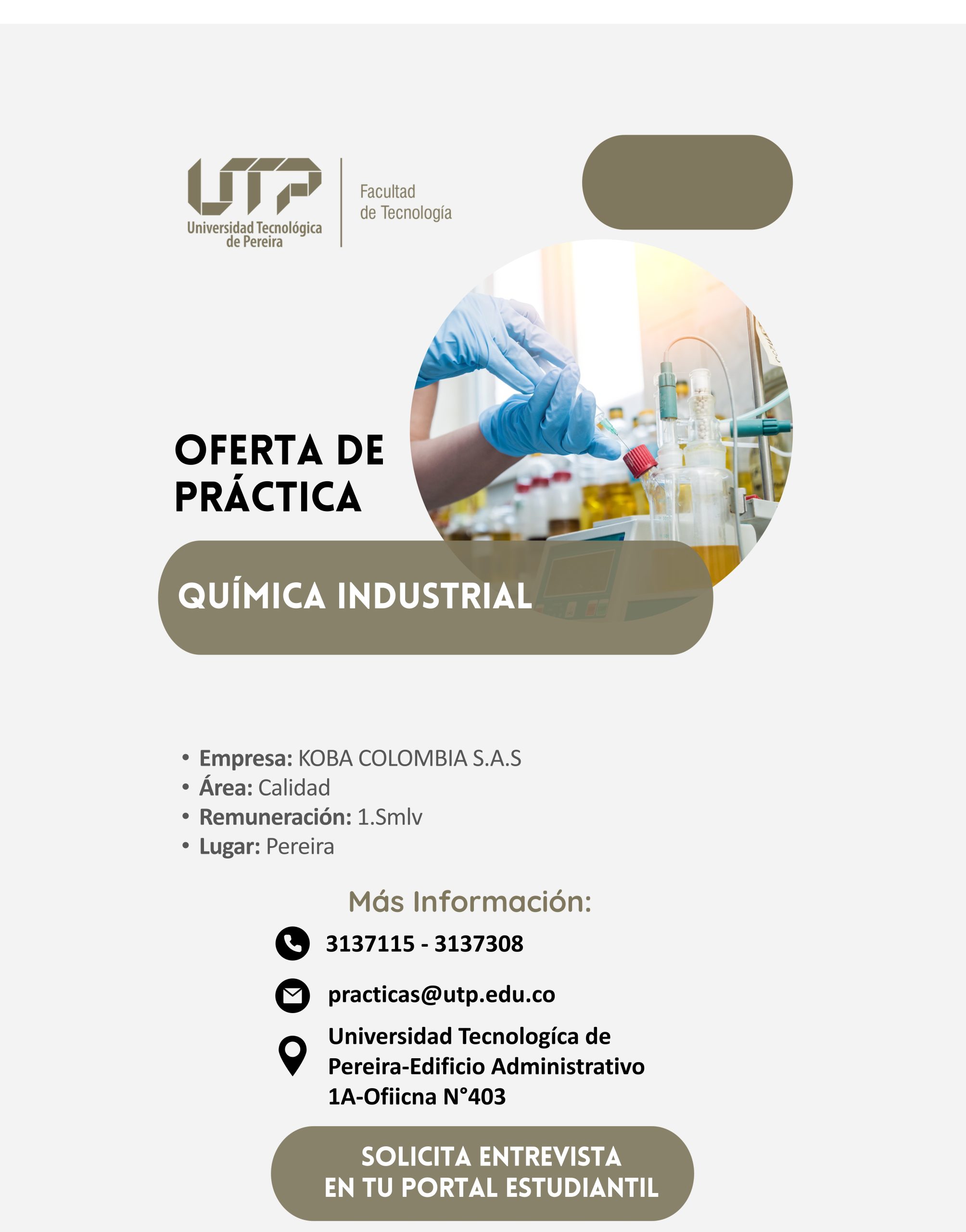 Septiembre | KOBA COLOMBIA S.A.S | PRACTICANTES ÁREAS DE CALIDAD | QUIMICA INDUSTRIAL | Ver más | Ir a solicitar entrevista |