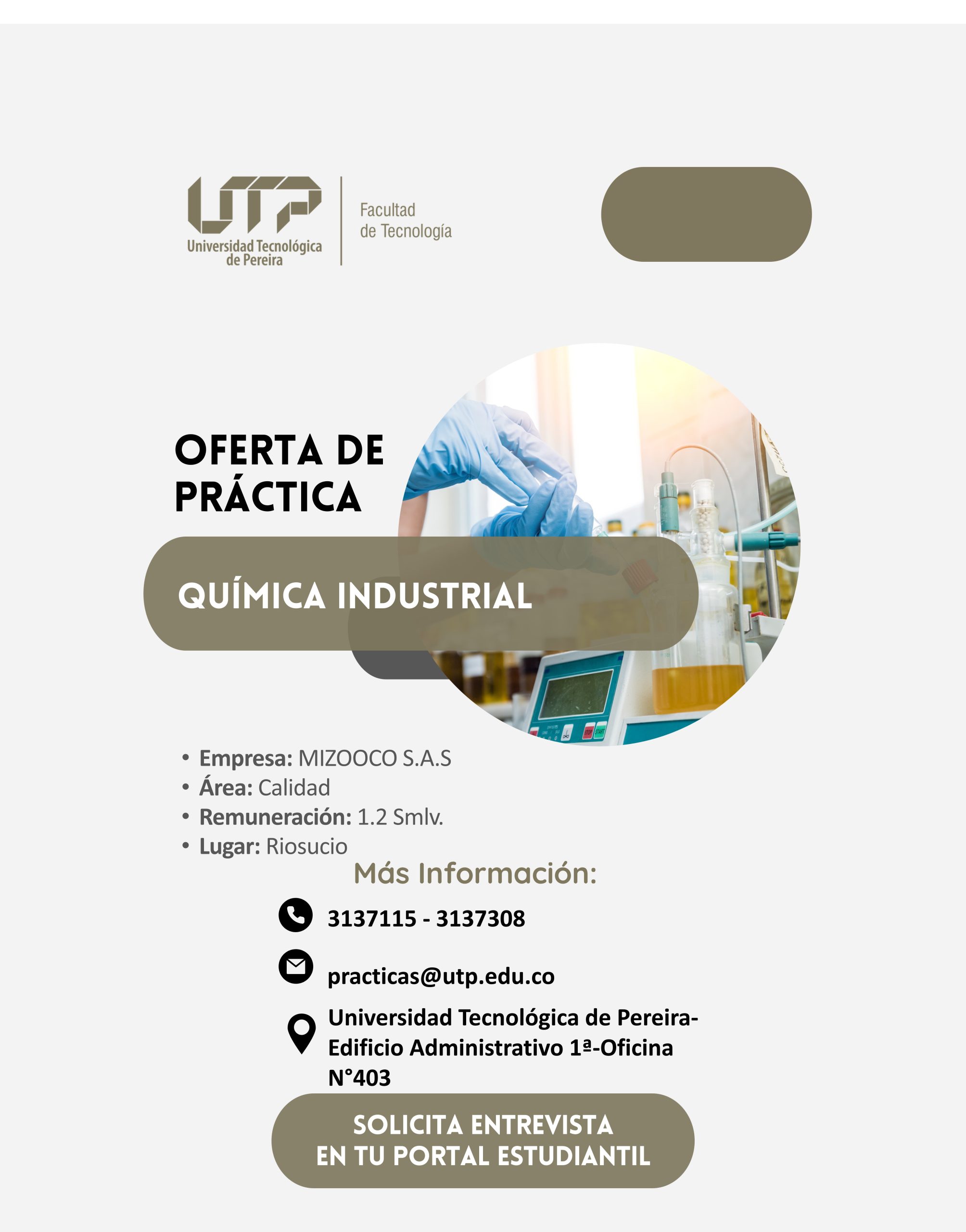 Septiembre | MIZOOCO S.A.S | PRACTICANTE DE CALIDAD | TECNOLOGIA QUIMICA | Ver más | Ir a solicitar entrevista |