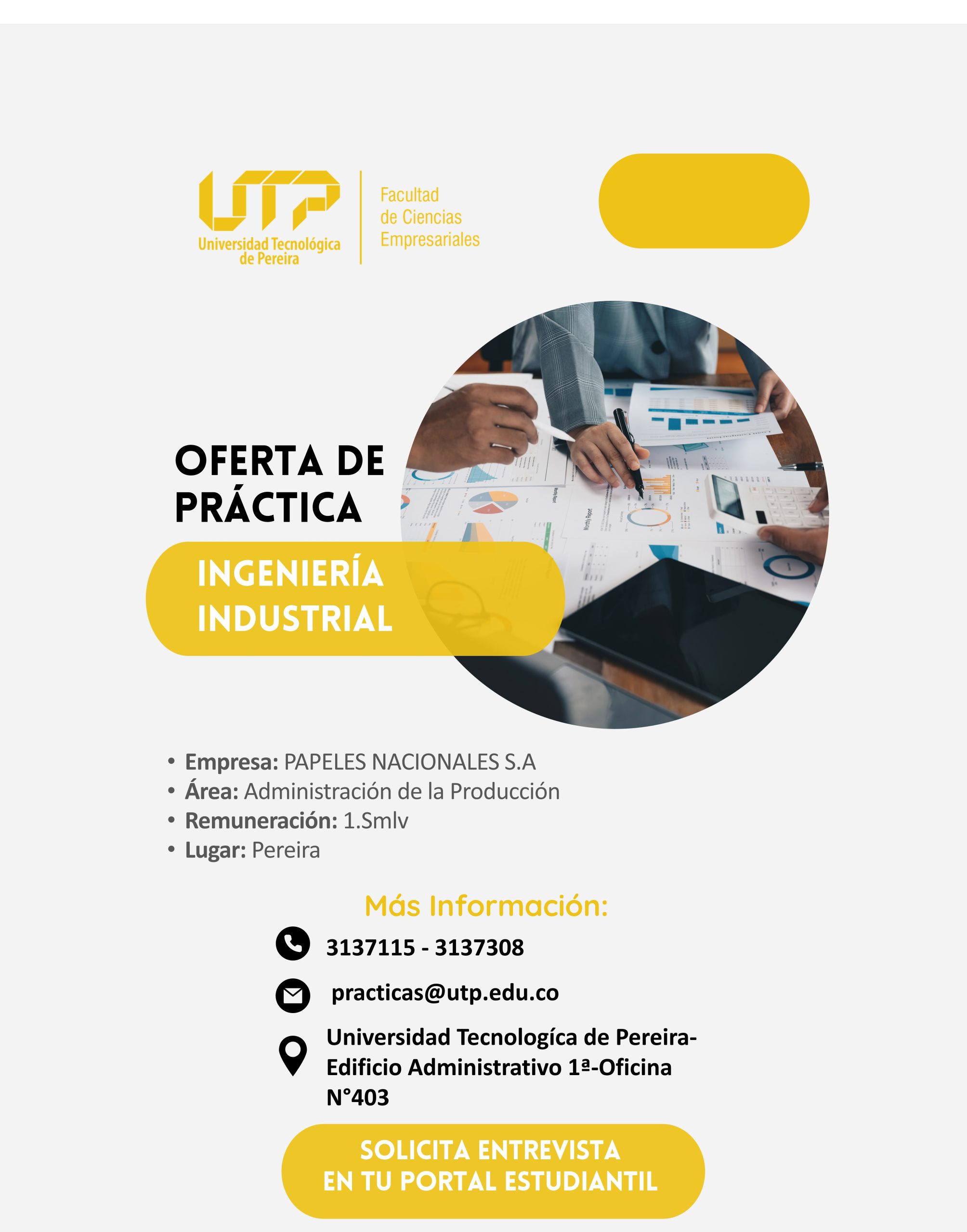Agosto | PAPELES REGIONALES S.A.S. | PRÁCTICA DE PRODUCCIÓN | INGENIERIA INDUSTRIAL | Ver más | Ir a solicitar entrevista |