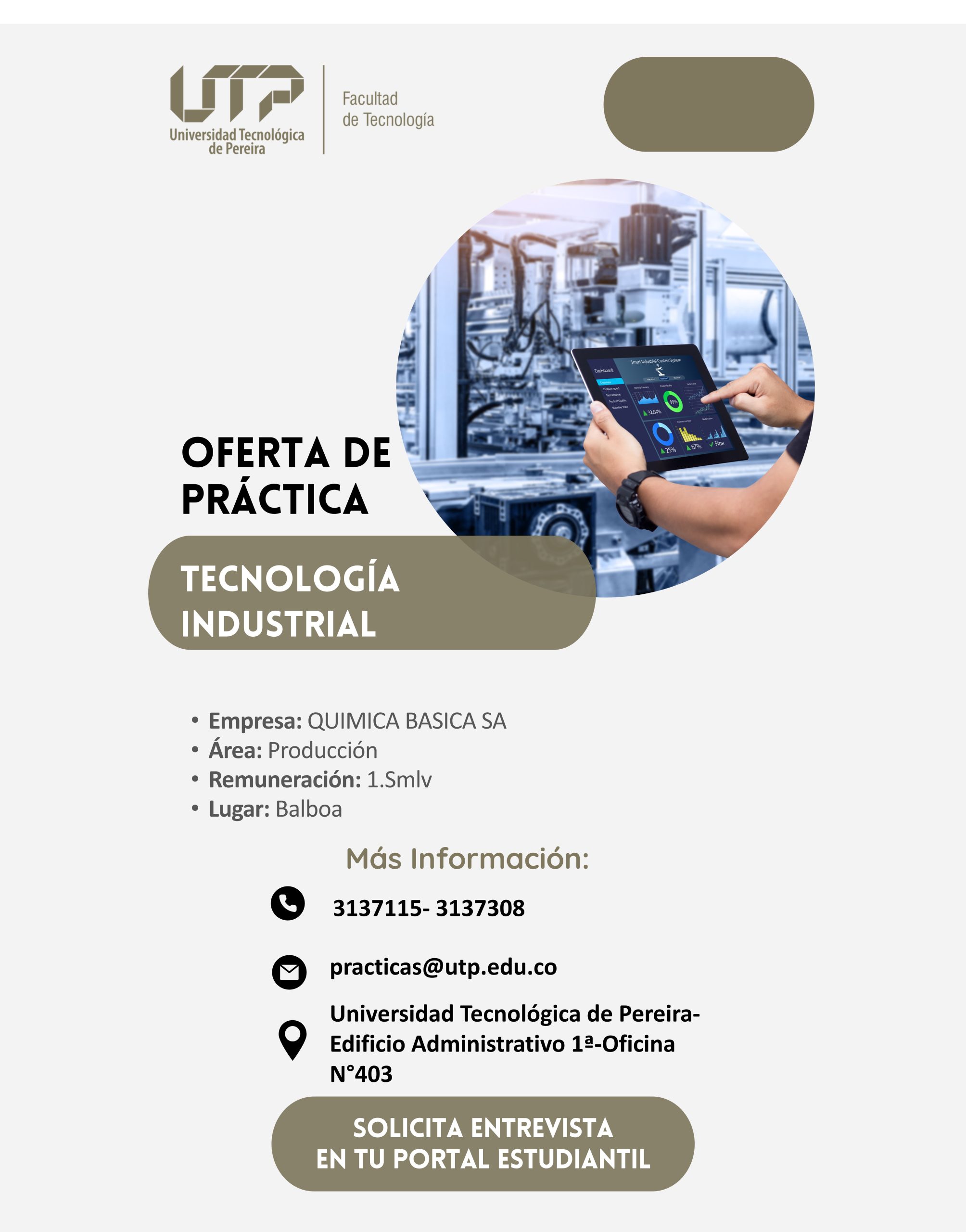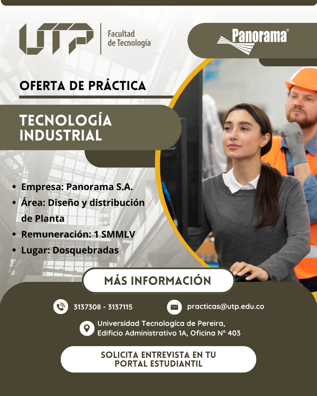 Septiembre | PANORAMA S.A | PRÁCTICA PARA TECNÓLOGO INDUSTRIAL | TECNOLOGÍA INDUSTRIAL | Ver más | Ir a solicitar entrevista |