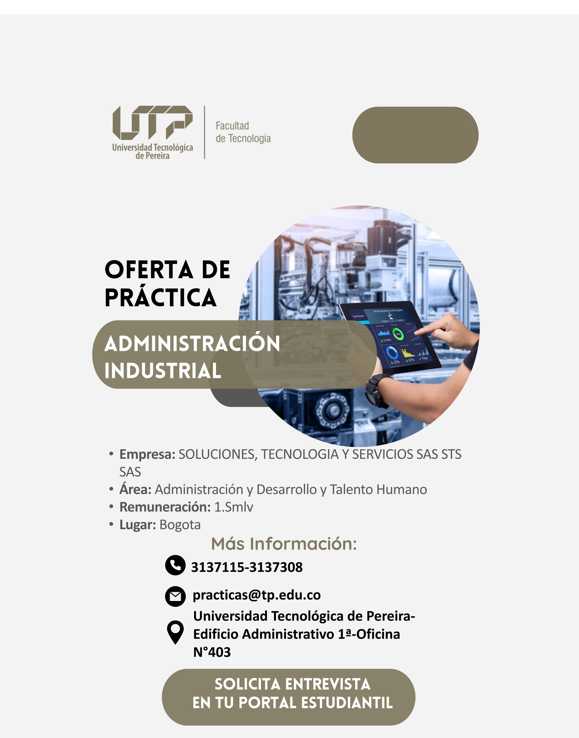 Agosto | SOLUCIONES, TECNOLOGIA Y SERVICIOS SAS «STS SAS» | PRACTICANTE TALENTO HUMANO | ADMINISTRACION INDUSTRIAL | Ver más | Ir a solicitar entrevista |